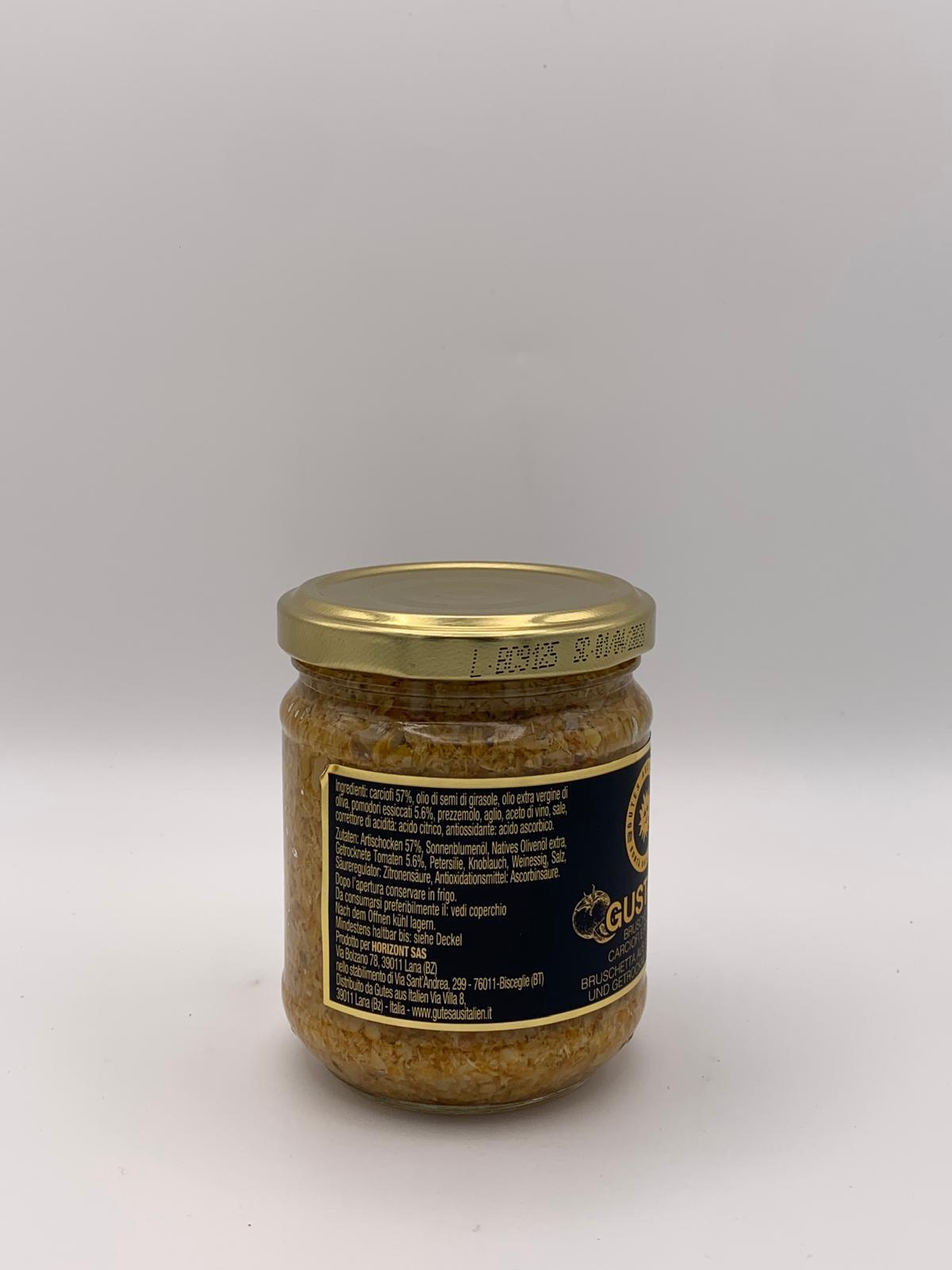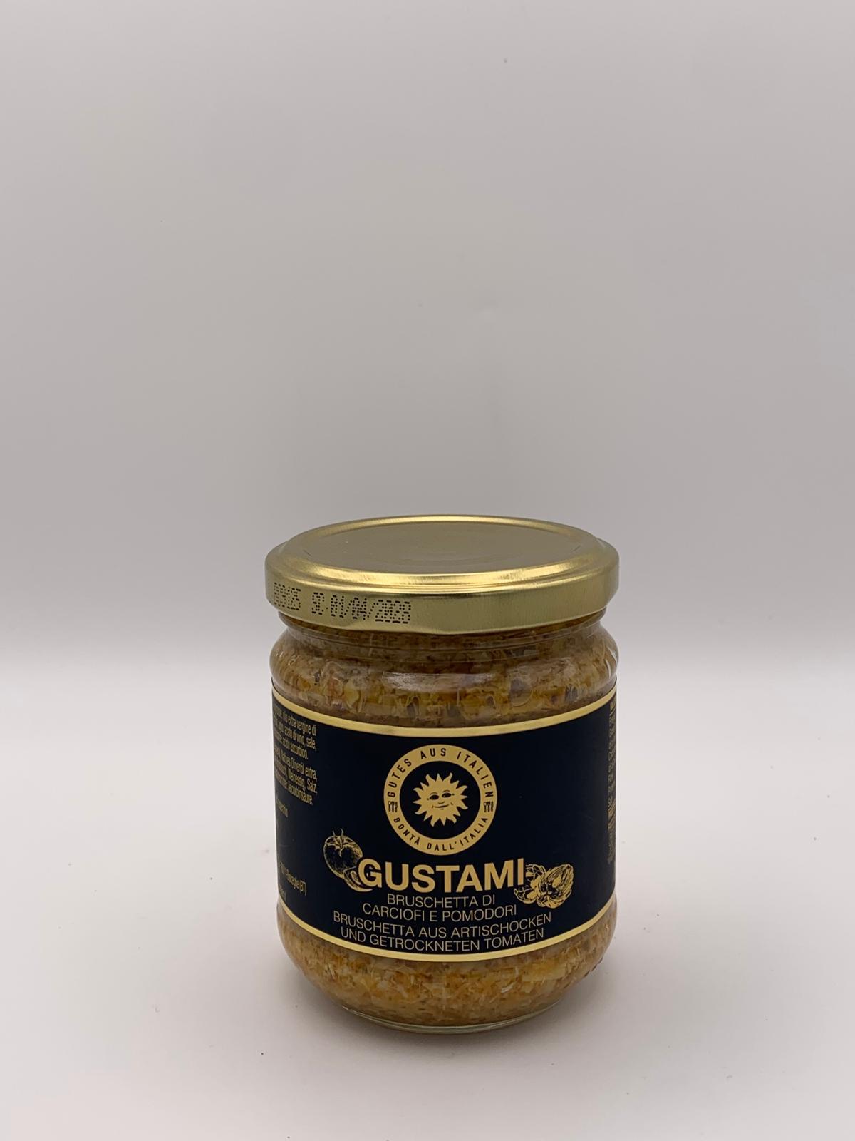 - „Gustami“ ist eine fein gewürzte Bruschetta, die Artischocken und duftende sonnengetrocknete Tomaten enthält.
