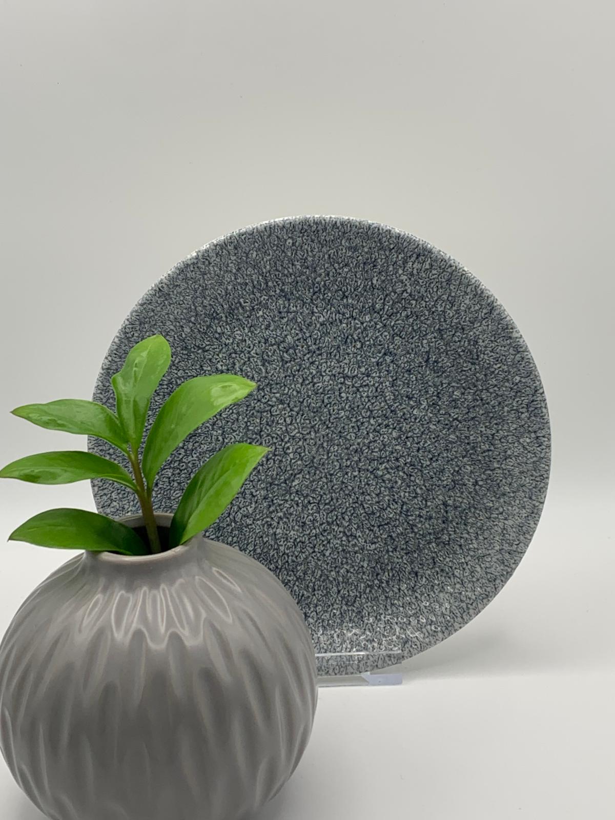 Studio Prints Raku Topaz Blue, inspiriert von saisonalen Zutaten und handdekoriert, macht jedes Stück zu einem Unikat.