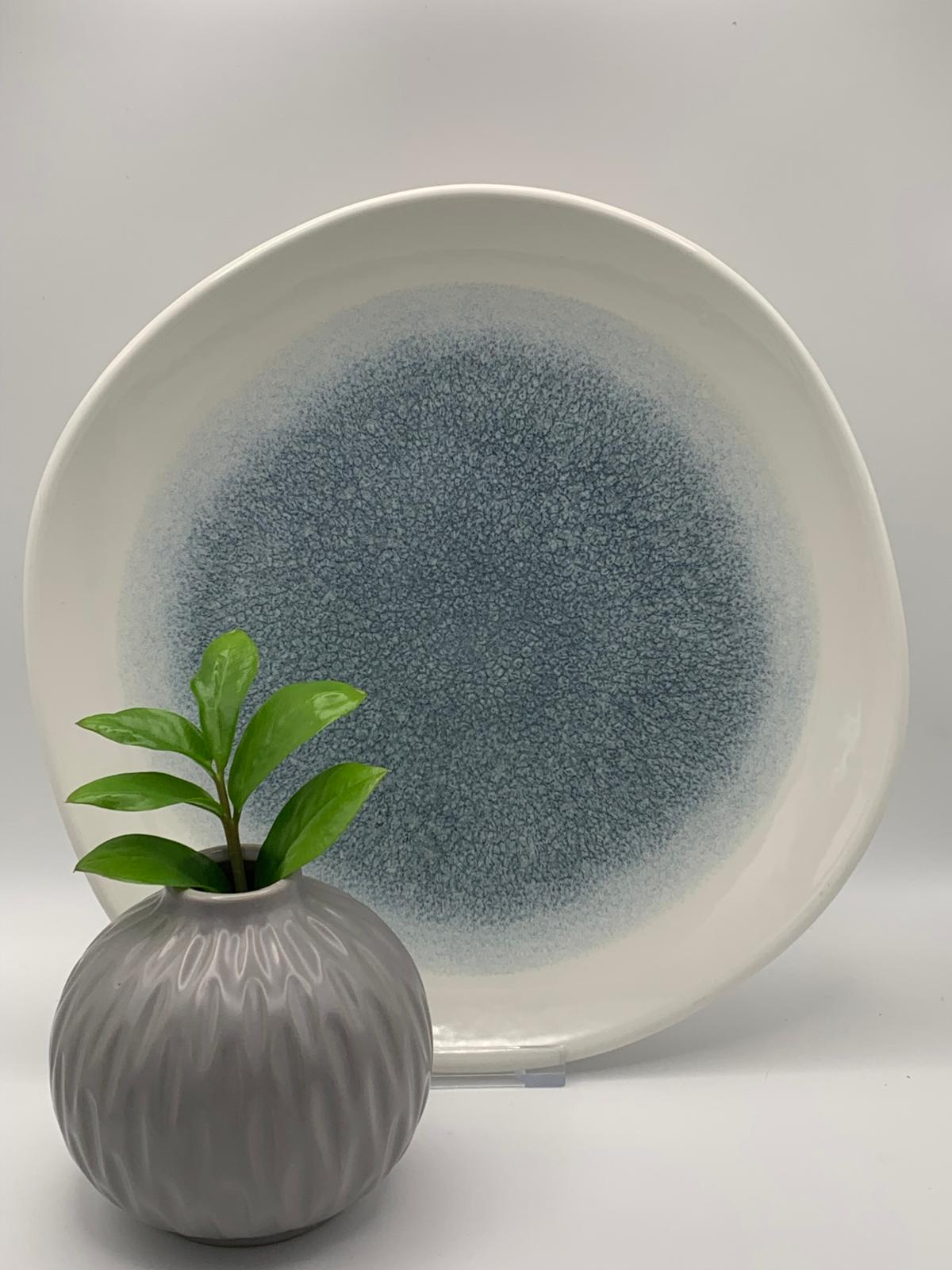 Studio Prints Raku Topaz Blue, inspiriert von saisonalen Zutaten und handdekoriert, macht jedes Stück zu einem Unikat.